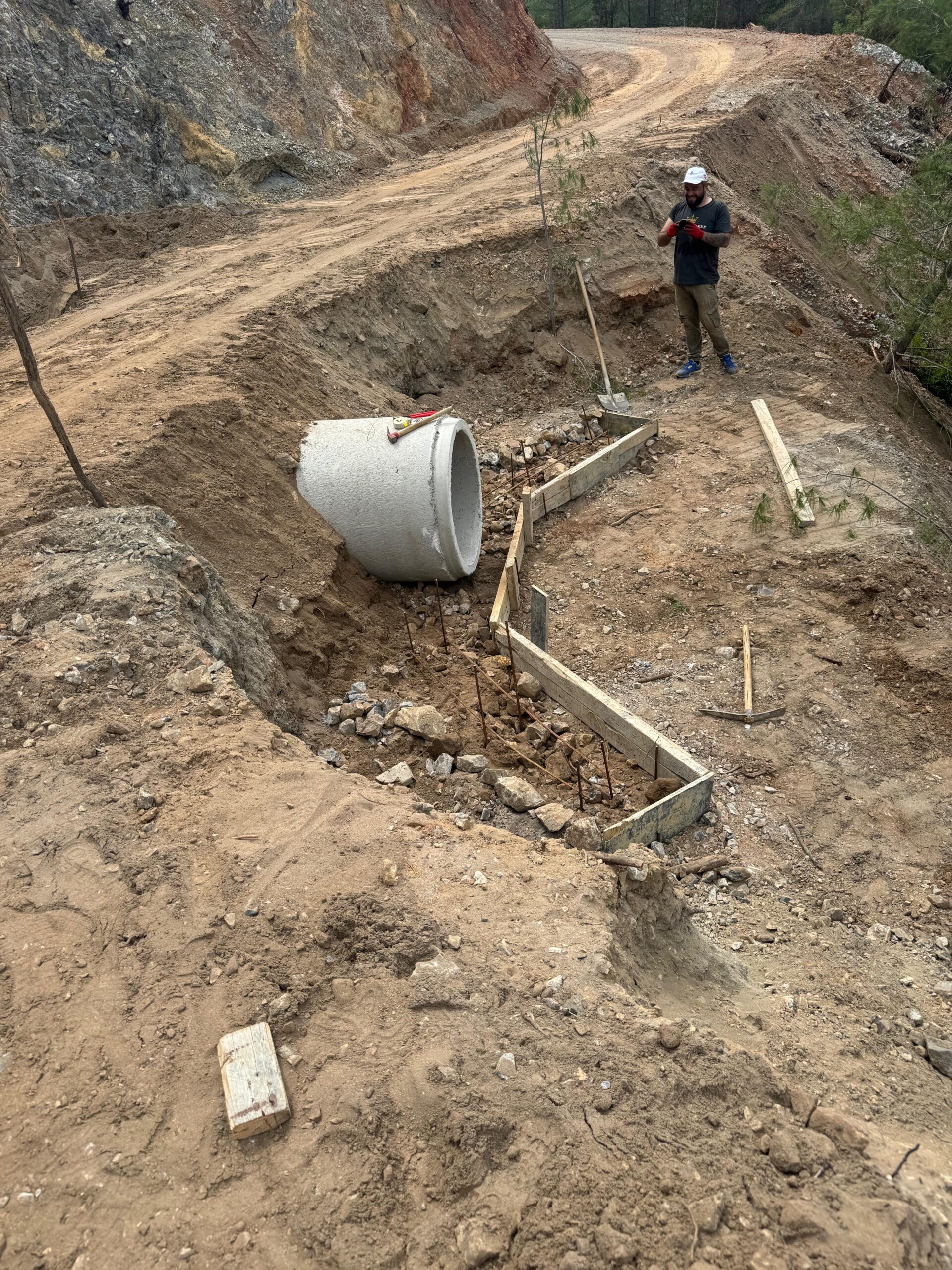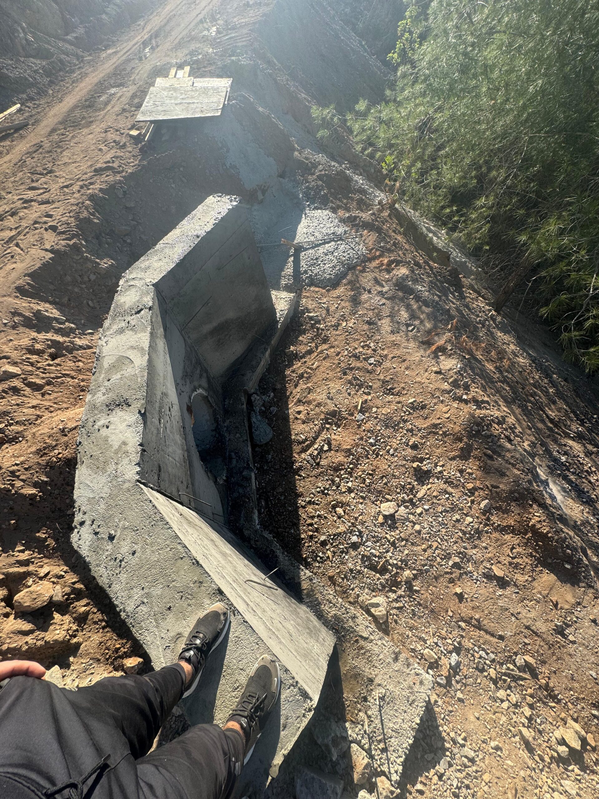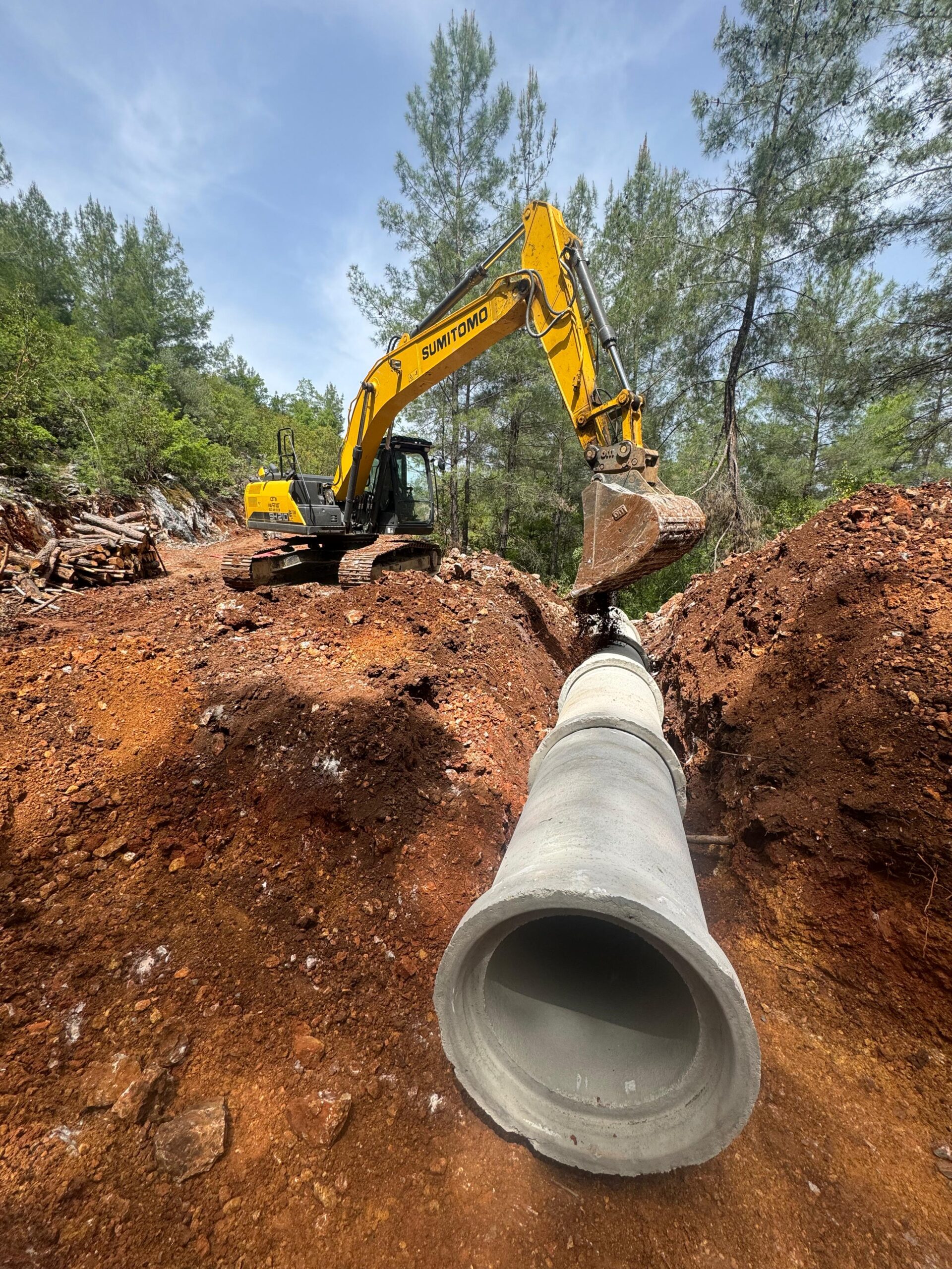 Özen Yapı Mühendislik olarak, zorlu arazi koşullarında gerçekleştirdiğimiz altyapı uygulamalarıyla projelere sağlam bir temel sunuyoruz. Bu kapsamda yürüttüğümüz sanat yapısı çalışmasında, yağmur suyu ve yüzey drenaj hatlarının geçişini sağlamak amacıyla beton menfez yerleştirme işlemlerini başarıyla tamamladık.